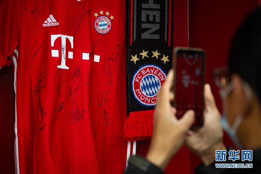 10月31日,一名观众在拍摄有拜仁慕尼黑队球员签名的球衣。 当日,由拜仁慕尼黑亚太办公室主办的拜仁慕尼黑欧洲三冠巡展在北京市朝阳区望京小街举行。展览展示了2019-2020赛季拜仁慕尼黑队的欧洲冠军联赛、德甲联赛、德国杯冠军奖杯(复制品),观众还可以在现场体验VR足球、与吉祥物“伯尼熊”互动等。该展览持续两天,之后将在武汉等中国其他城市举办。 新华社记者陈钟昊摄