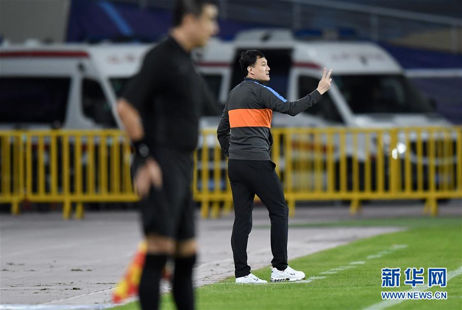 10月31日,山东鲁能泰山队主教练郝伟在场边指挥。 当日,在2020赛季中国足球协会超级联赛(苏州赛区)第18轮比赛中,山东鲁能泰山队对阵河北华夏幸福队。 新华社记者 许畅 摄