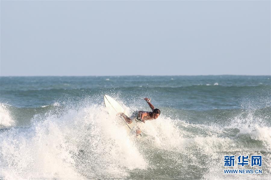 10月31日,国家冲浪队队员符情在进行冲浪表演。 当日,国家冲浪队在海南万宁日月湾举行了开放日活动,国家冲浪队的队员们现场表演海上冲浪。据悉,该活动是海南2020亲水运动季的活动之一,旨在普及冲浪运动,同时推动体育与旅游、教育的融合。 新华社记者 张丽芸 摄