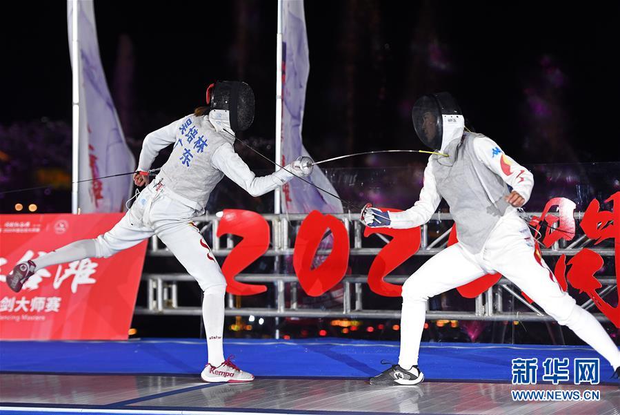 10月31日,石玥(右)与吴培林在决赛中。 当日,2020中国击剑大师赛在南昌举行。在女子花剑决赛中,石玥以15比13战胜吴培林,获得冠军。 新华社记者 万象 摄
