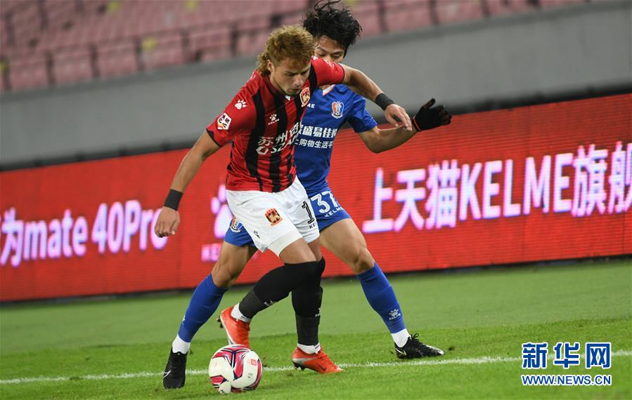 10月31日,苏州东吴队球员哈米提(左)在比赛中与江西联盛队球员易县龙拼抢。 当日,在2020中国足球协会甲级联赛第二阶段(常州赛区)第三轮比赛中,苏州东吴队以2比1战胜江西联盛队。 新华社发(史康 摄)