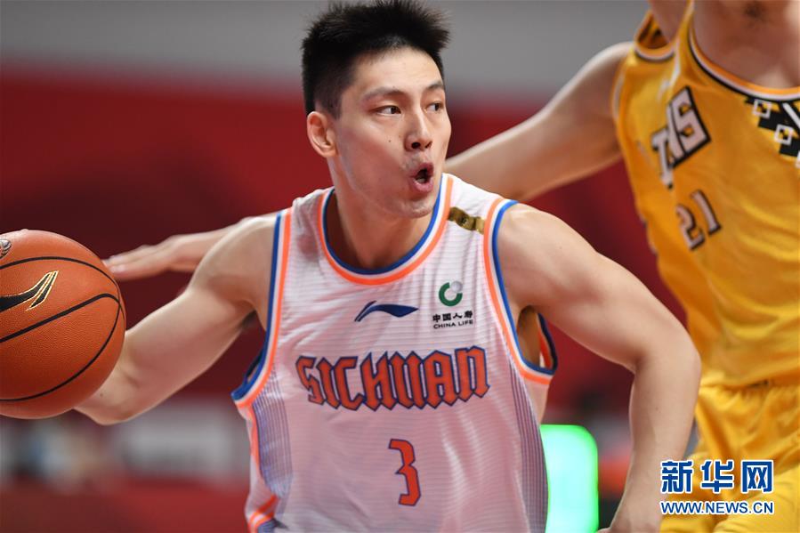 11月1日,四川五粮金樽队球员袁堂文在比赛中带球突破。 当日,在浙江诸暨举行的2020-2021中国男子篮球职业联赛(CBA)第一阶段比赛中,浙江广厦控股队以97比96战胜四川五粮金樽队。新华社记者 沙达提 摄