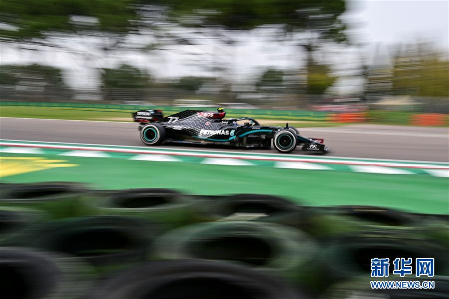 11月1日,梅赛德斯车队芬兰车手博塔斯在比赛中。 当日,在意大利伊莫拉赛道举行的2020赛季世界一级方程式锦标赛(F1)艾米利亚-罗马涅大奖赛中,梅赛德斯车队英国车手汉密尔顿以1小时28分32秒430的成绩夺得冠军,队友芬兰车手博塔斯获得亚军。雷诺车队澳大利亚车手里卡尔多获得季军。 新华社/法新