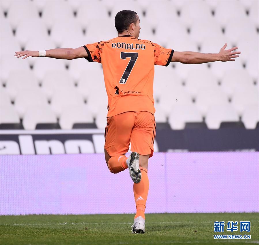 11月1日,尤文图斯队球员克·罗纳尔多在比赛中庆祝第一粒进球。 当日,在2020-2021赛季意大利足球甲级联赛第六轮比赛中,尤文图斯队客场以4比1战胜斯佩齐亚队。 新华社发(费代里科·塔尔迪托 摄)