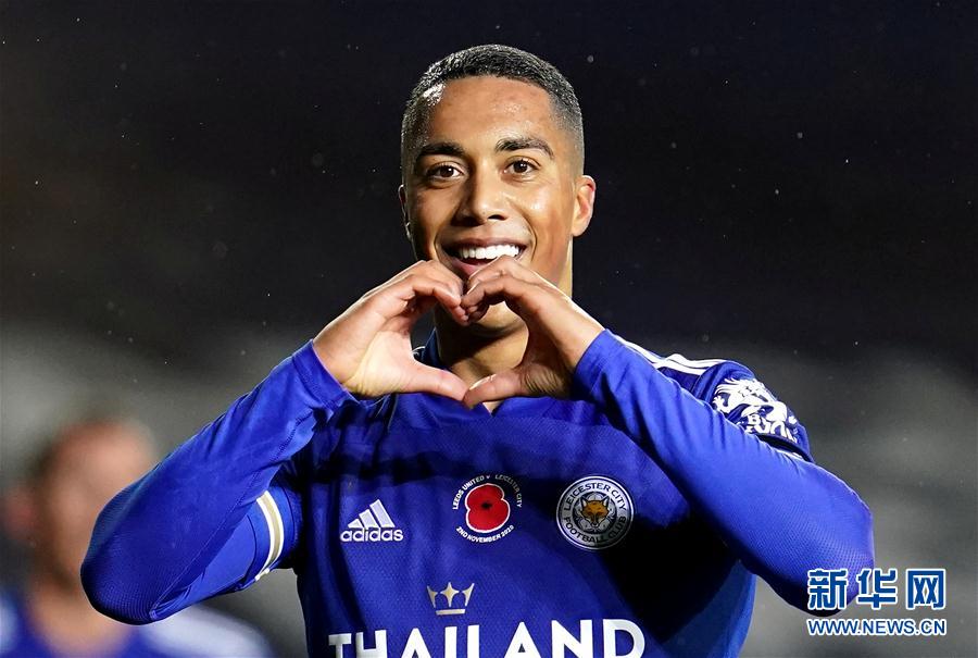 11月2日,莱斯特城队球员蒂勒曼斯庆祝得分。 当日,在2020-2021赛季英格兰足球超级联赛第七轮比赛中,莱斯特城队客场以4比1战胜利兹联队。 新华社/路透