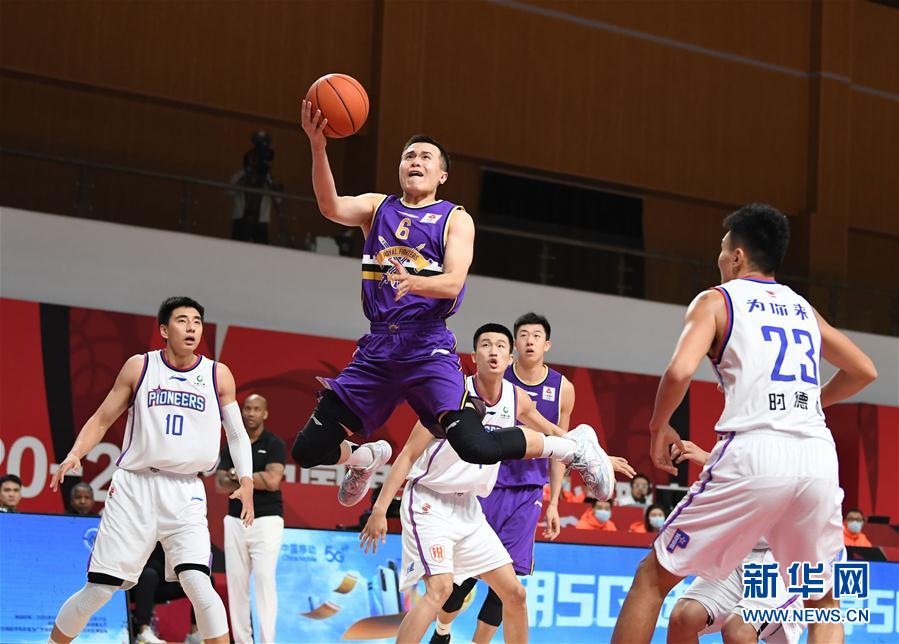 11月4日,北京紫禁勇士队球员张帆(上)在比赛中突破防守上篮。 当日,在浙江诸暨举行的2020-2021赛季中国男子篮球职业联赛(CBA)第一阶段第八轮比赛中,北京紫禁勇士队以87比80战胜天津先行者队。 新华社记者 沙达提 摄