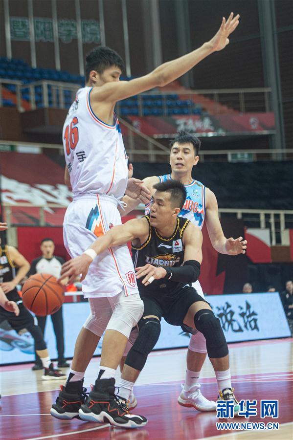 11月4日,辽宁本钢队球员郭艾伦(下)在比赛中传球。 当日,在浙江诸暨举行的2020-2021赛季中国男子篮球职业联赛(CBA)第一阶段第八轮比赛中,辽宁本钢队以121比108战胜新疆伊力特队。 新华社发(江汉摄)