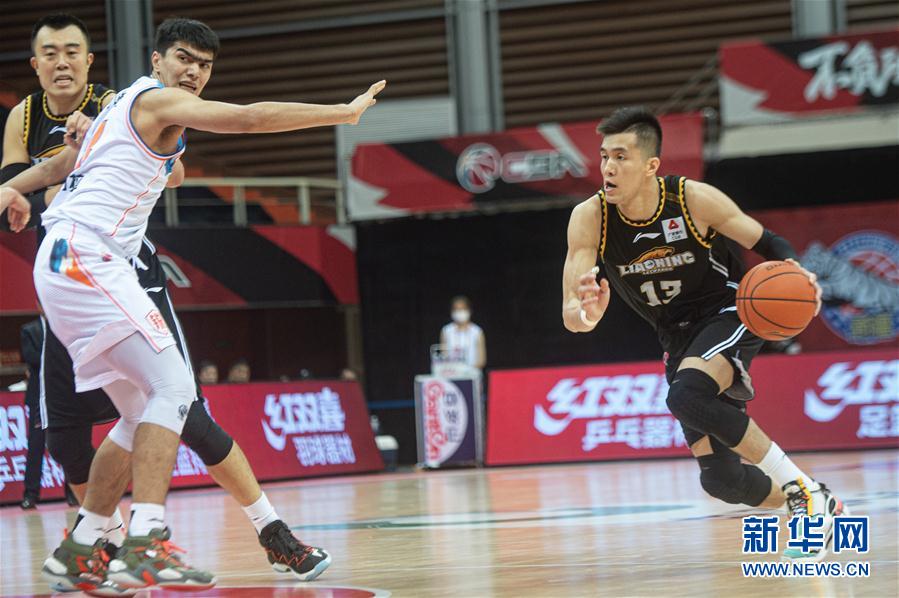 11月4日,辽宁本钢队球员郭艾伦(右)在比赛中带球进攻。 当日,在浙江诸暨举行的2020-2021赛季中国男子篮球职业联赛(CBA)第一阶段第八轮比赛中,辽宁本钢队以121比108战胜新疆伊力特队。 新华社发(江汉摄)