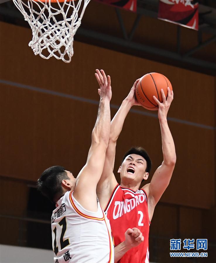 11月4日,青岛国信海天队球员王睿泽(右)在比赛中上篮。 当日,在浙江诸暨举行的2020-2021赛季中国男子篮球职业联赛(CBA)第一阶段第八轮比赛中,青岛国信海天队以84比105不敌九台农商银行队。 新华社记者 沙达提 摄