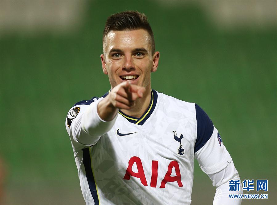 11月5日,热刺队球员洛塞尔索在进球后庆祝。 当日,在2020-2021赛季欧罗巴联赛J组小组赛第三轮比赛中,英格兰托特纳姆热刺队客场以3比1战胜保加利亚卢多戈雷茨队。 新华社/路透