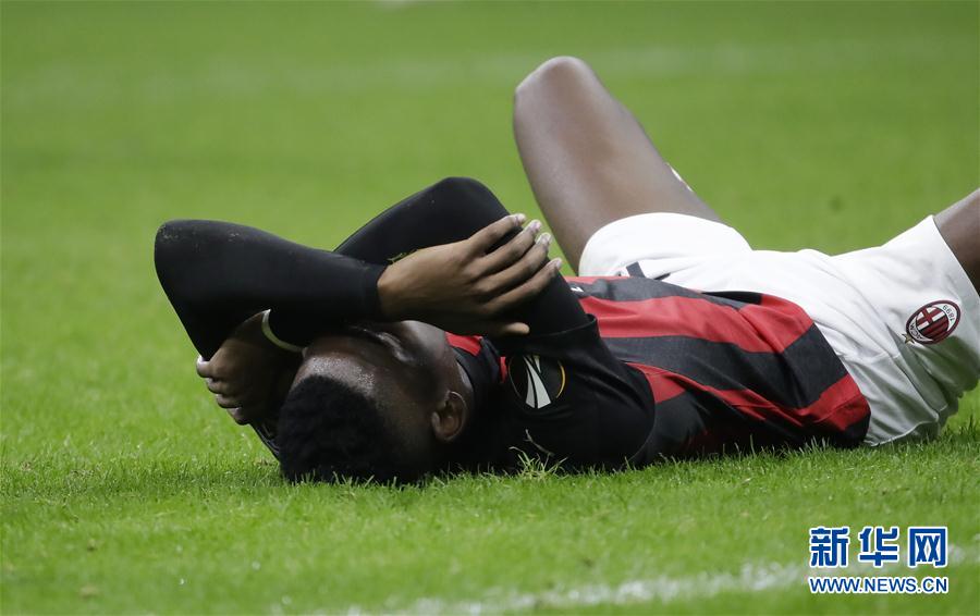 11月5日,AC米兰队球员莱奥在错失进球机会后倒地。 当日,在2020-2021赛季欧罗巴联赛H组小组赛第三轮比赛中,意甲AC米兰队主场以0比3不敌法甲里尔队。 新华社/美联