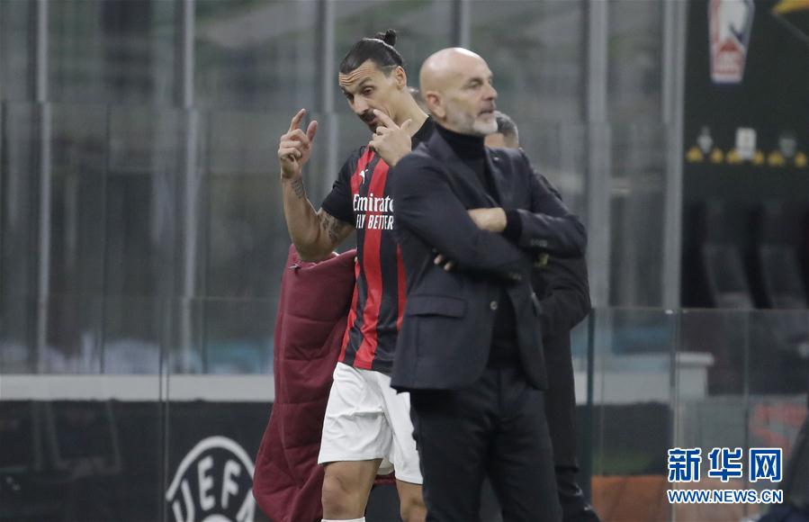 11月5日,AC米兰队球员伊布拉希莫维奇(左)被替换下场后从主教练皮奥利身后走过。 当日,在2020-2021赛季欧罗巴联赛H组小组赛第三轮比赛中,意甲AC米兰队主场以0比3不敌法甲里尔队。 新华社/美联