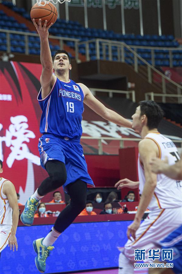 11月6日,天津先行者队球员托多罗维奇(上)在比赛中上篮。 当日,在浙江诸暨举行的2020-2021赛季中国男子篮球职业联赛(CBA)第一阶段第九轮比赛中,天津先行者队以99比91战胜吉林九台农商银行队。 新华社发(江汉摄)