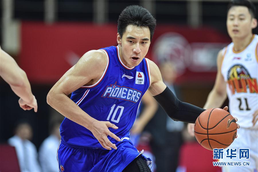 11月6日,天津先行者队球员金鑫(前)在比赛中突破。 当日,在浙江诸暨举行的2020-2021赛季中国男子篮球职业联赛(CBA)第一阶段第九轮比赛中,天津先行者队以99比91战胜吉林九台农商银行队。 新华社发(江汉摄)
