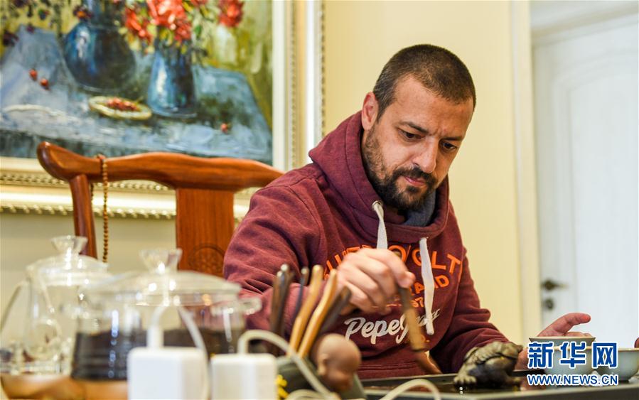 11月4日,雨果在家中沏茶。 今年42岁的雨果·马丁斯是一位来自葡萄牙的欧足联A级教练员,2016年他来到鄂尔多斯,加入一家足球俱乐部,开始了在中国的执教生涯。 四年的时间里,雨果已经适应并喜欢上了鄂尔多斯这座草原城市,也对这里独特的草原文化深深着迷。在课堂上,雨果悉心教授孩子们踢足球,也希望帮助更多热爱足球的孩子进行系统训练。在雨果和丁洁的努力下,俱乐部学员的规模从一开始的十几个人发展到如今的近百人。雨果说:“很多小朋友都有巨大的潜力,相信他们能够成长为特别优秀的球员。” 新华社记者 连振 摄
