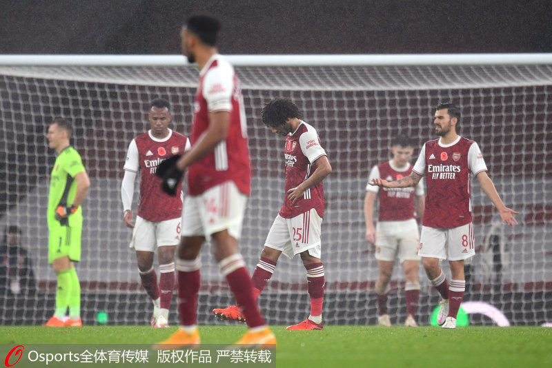 阿森纳丢球后队员情绪低落