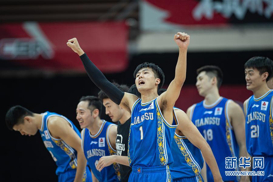 11月9日,苏州肯帝亚队球员黄荣奇(前)在比赛胜利后庆祝。 当日,在浙江诸暨举行的2020-2021赛季中国男子篮球职业联赛(CBA)第一阶段第十轮比赛中,苏州肯帝亚队以108比105战胜天津先行者队。 新华社发(江汉摄)