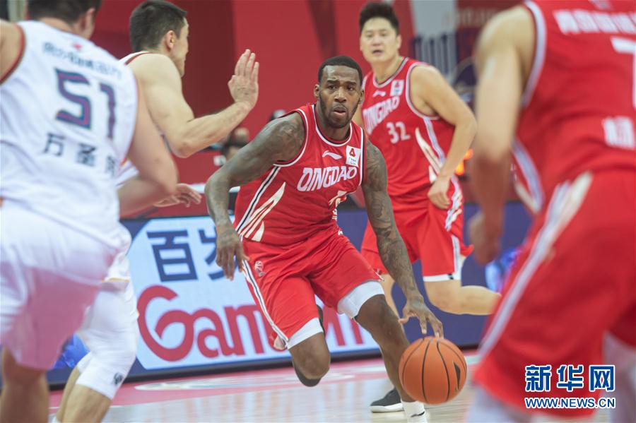 11月10日,青岛国信海天队球员亚当斯(中)在比赛中进攻。 当日,在浙江诸暨举行的2020-2021赛季中国男子篮球职业联赛(CBA)第一阶段第11轮比赛中,青岛国信海天队以118比104战胜南京同曦宙光队。 新华社发(江汉摄)