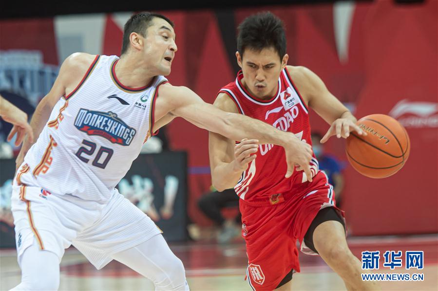 11月10日,南京同曦宙光队球员西热力江(左)在比赛中抢断青岛国信海天队球员林韦翰。 当日,在浙江诸暨举行的2020-2021赛季中国男子篮球职业联赛(CBA)第一阶段第11轮比赛中,青岛国信海天队以118比104战胜南京同曦宙光队。 新华社发(江汉摄)
