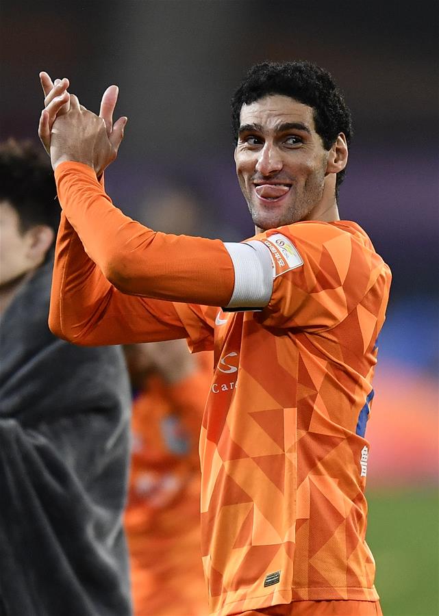11月10日,山东鲁能泰山队球员费莱尼在赛后庆祝胜利。 当日,在2020赛季中国足球协会超级联赛(苏州赛区)争冠组第五、六名排位赛次回合比赛中,山东鲁能泰山队和重庆当代队在常规时间和加时赛中打成2比1,总分5比5战平;在点球大战中,山东鲁能泰山队以4比3战胜重庆当代队,从而以两回合总比分比9比8战胜重庆当代队,获得联赛第五名。 新华社记者 许畅 摄