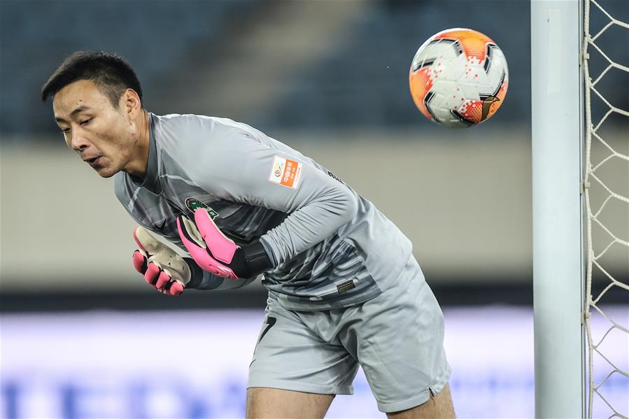 11月10日,河南建业队门将吴䶮接球失误送给天津泰达队角球,随后天津泰达队利用此次角球机会取得进球。 当日,在2020赛季中国足球协会超级联赛(大连赛区)第九、十名排位赛次回合比赛中,河南建业队以2比1战胜天津泰达队。最终,河南建业队以两回合总比分2比1战胜天津泰达队,获得本赛季联赛第九名。 新华社记者 潘昱龙 摄