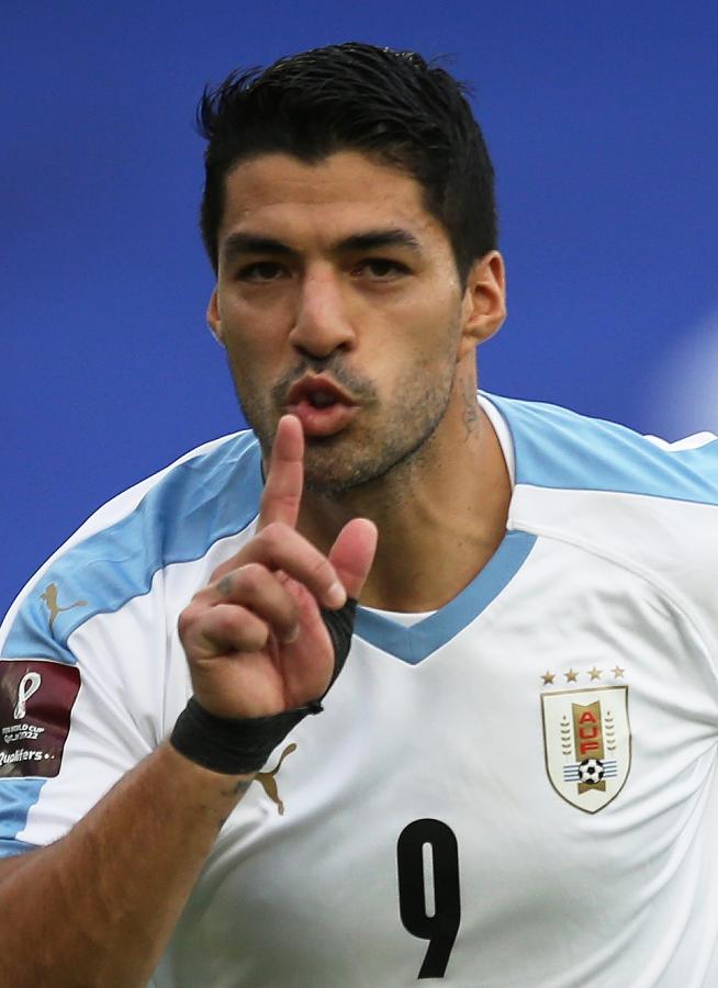 11月13日,乌拉圭队球员苏亚雷斯庆祝进球。
