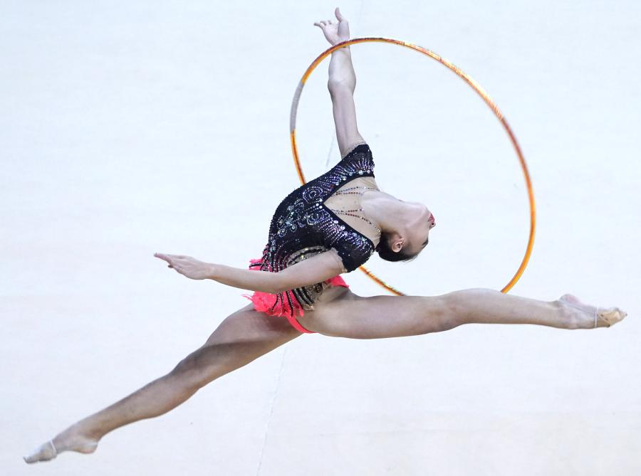 11月14日,浙江队选手汤萌在圈操比赛中。