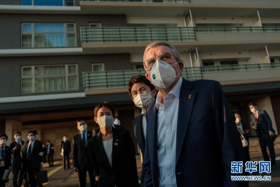 当日,国际奥委会主席巴赫在日本东京参观奥运村。
