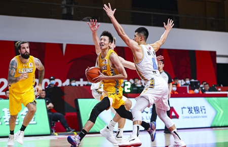 在浙江诸暨举行的2020-2021赛季中国男子篮球职业联赛(CBA)第一阶段第十一轮比赛中。
