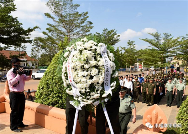 2017年3月28日,中国驻柬埔寨使馆官员以及柬国防部官员、中国援柬军事专家等,前往柬埔寨磅湛省斯昆镇维和烈士纪念碑,祭奠为柬埔寨和平事业献出生命的中国维和部队战士陈知国和余仕利。(编者注)