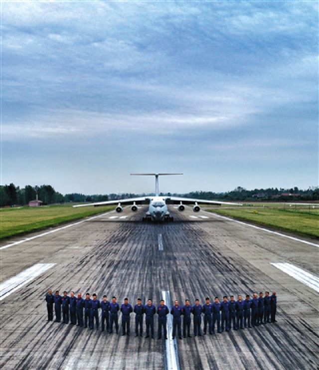 ↑“昆仑雄鹰大队”飞行三大队飞行员与飞机合影