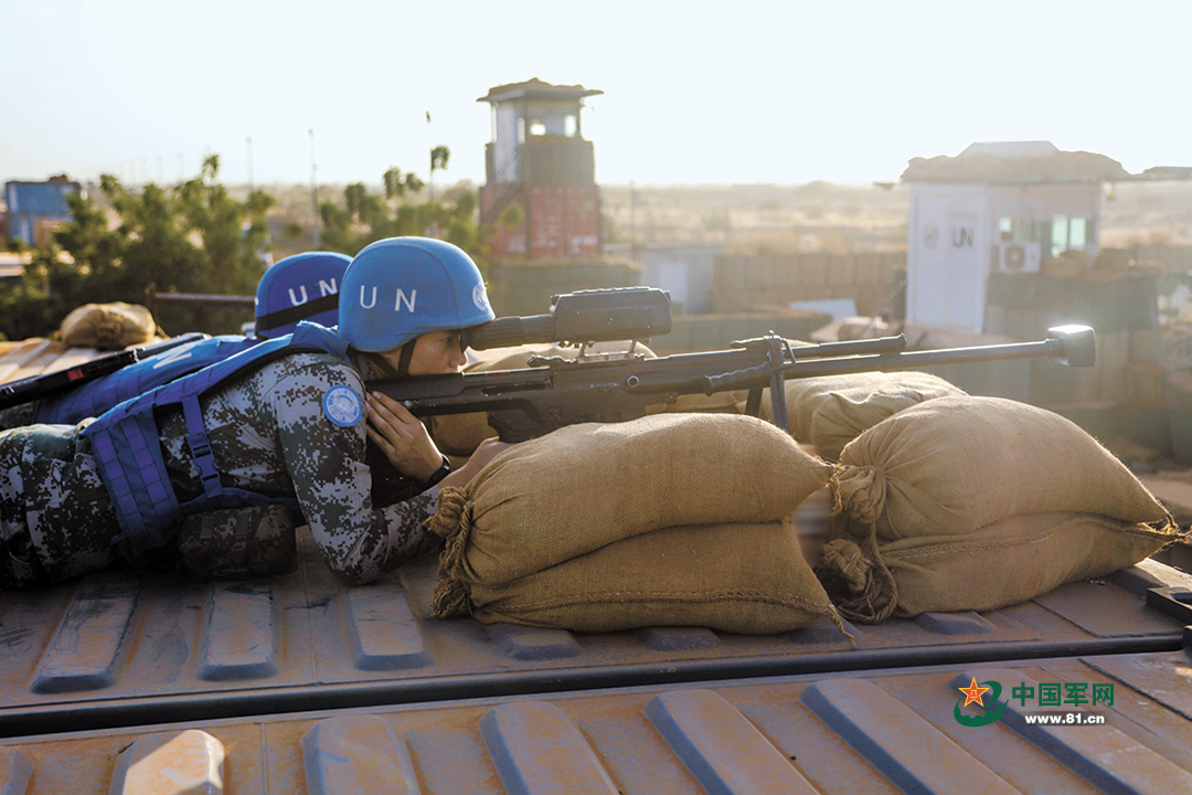 中国第6批赴马里维和部队狙击手在制高点观察警戒。贾春明摄