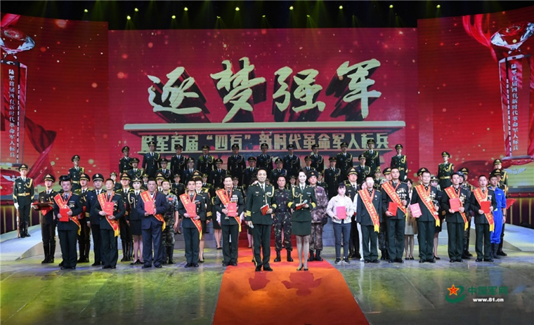 首届“四有”新时代革命军人标兵颁奖仪式。前排左四为杨祥国。