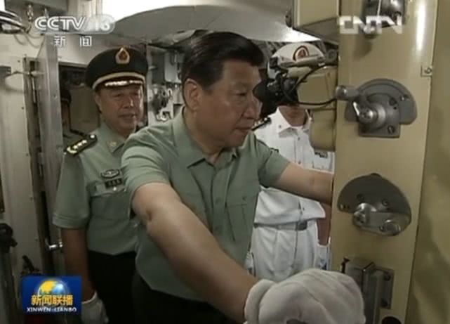 习近平视察某新型潜艇。