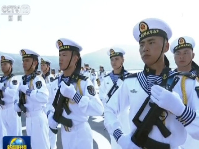 习近平主席检阅部队并发表重要讲话。他强调,“在新时代的征程上,在实现中华民族伟大复兴的奋斗中,建设强大的人民海军的任务从来没有像今天这样紧迫。要深入贯彻新时代党的强军思想,坚持政治建军、改革强军、科技兴军、依法治军,坚定不移加快海军现代化进程,善于创新,勇于超越,努力把人民海军全面建成世界一流海军。”