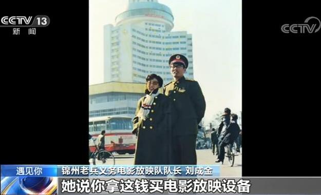 锦州老兵义务电影放映队队长 刘成金:我们家有个存折(有)2万多块钱。她说刘成金这钱给你。给我当时我激动坏了,她说你拿这钱买电影放映设备,买套新的。把这钱拿出来,拿出来当时我就给她敬个礼,敬个军礼,哎呀我说谢谢。