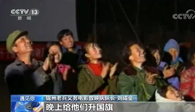 锦州老兵义务电影放映队队长 刘成金:我们带一面国旗,那个村那个学校从来没升过国旗,所以说当天晚上我们就找了一个木杆,完了立起来升国旗,晚上给他升国旗,这4个孩子非常感动,老师非常感动。