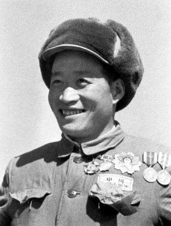黄继光,1931年生,1951年3月参加中国人民志愿军。在1952年10月打响的上甘岭战役中,黄继光所在营奉命夺取上甘岭西侧597.9高地。战斗中,部队接连攻占3个阵地后受阻,连续组织3次爆破均未奏效。时近拂晓,再不拿下高地将贻误整个战机。关键时刻,时任通信员的黄继光挺身而出,请求担负爆破任务,率两名战士攻坚。