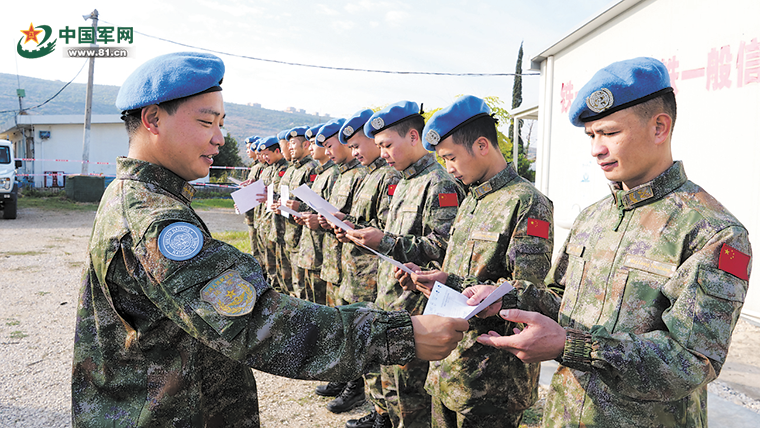参与贝鲁特灾后重建援助任务的维和官兵领取任务证书。赵文环摄