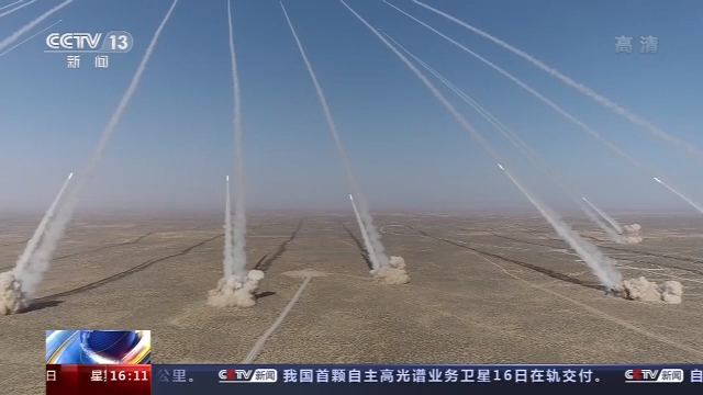 西北大漠,一场复杂战场环境下的炮兵实弹演练正在进行。接到出动命令后,指挥员迅速组织车辆编队,向70公里外的作战地域机动。到达待机阵地后,部队迅速展开战斗队形。炮兵侦察分队隐蔽接敌,同时利用无人机高空侦察,将获取的目标信息实时回传,指挥员针对不同目标性质特点,制定作战方案。不到20分钟,部队完成射击准备,炮兵群展开首轮火力打击。