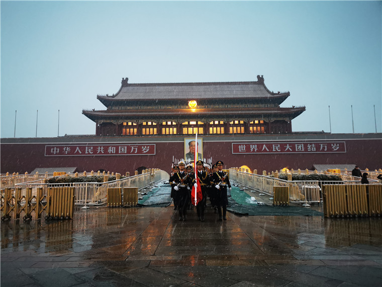 伴着晨曦,走上战位,用完美的动作“唤醒”一座城、一国家。阅尽沧桑的天安门,将继续见证国旗卫士们的庄严豪迈。