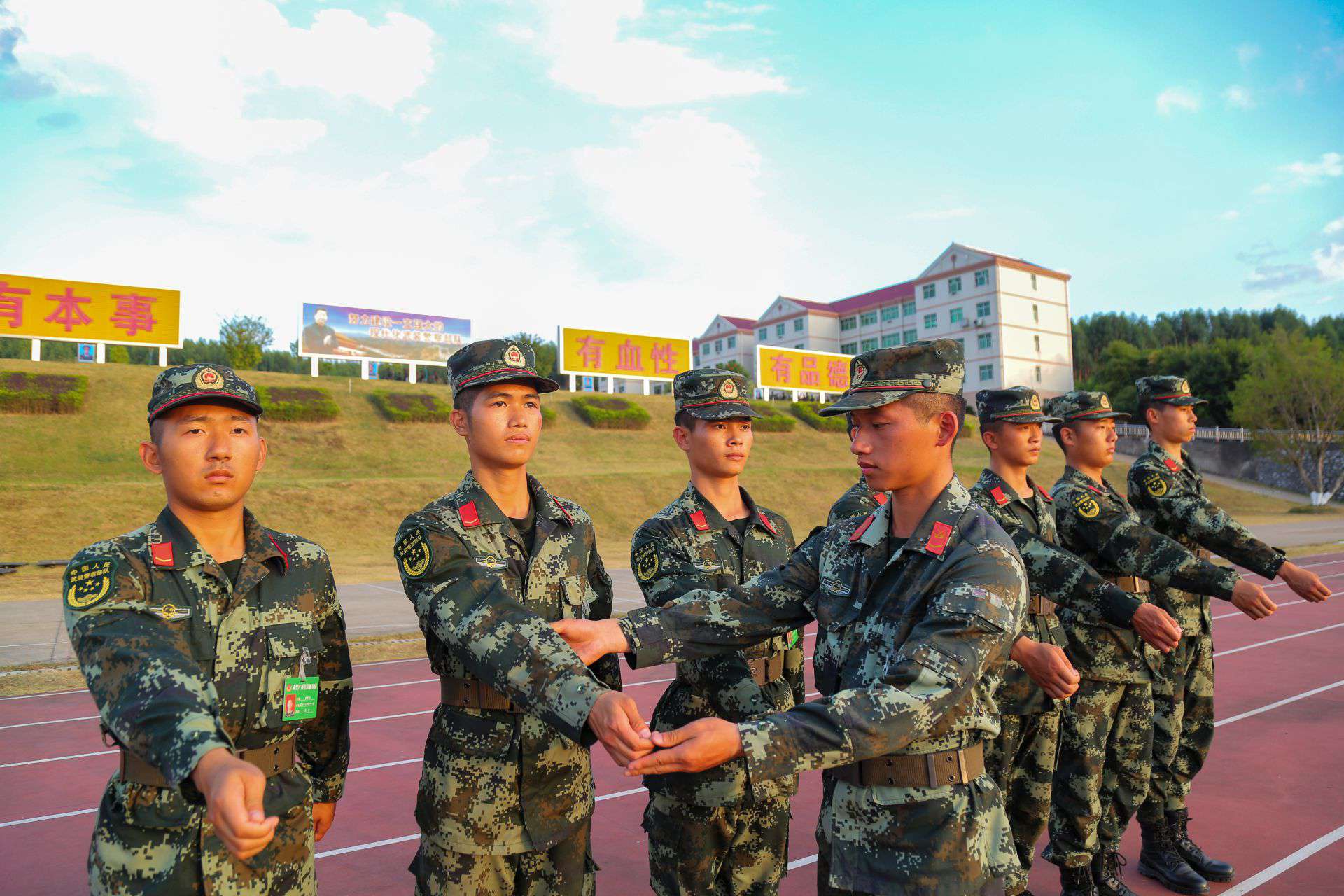 前不久,新兵中队组织了3000米跑测试,申天豪快要挺不住的时候,汪旭成把全班战友集合在终点,有节奏地给他鼓掌,自己转身跑到小申身边,面对面地给他加油鼓劲,带着他一起跑……那一次,是申天豪跑完人生中的第一个3000米。