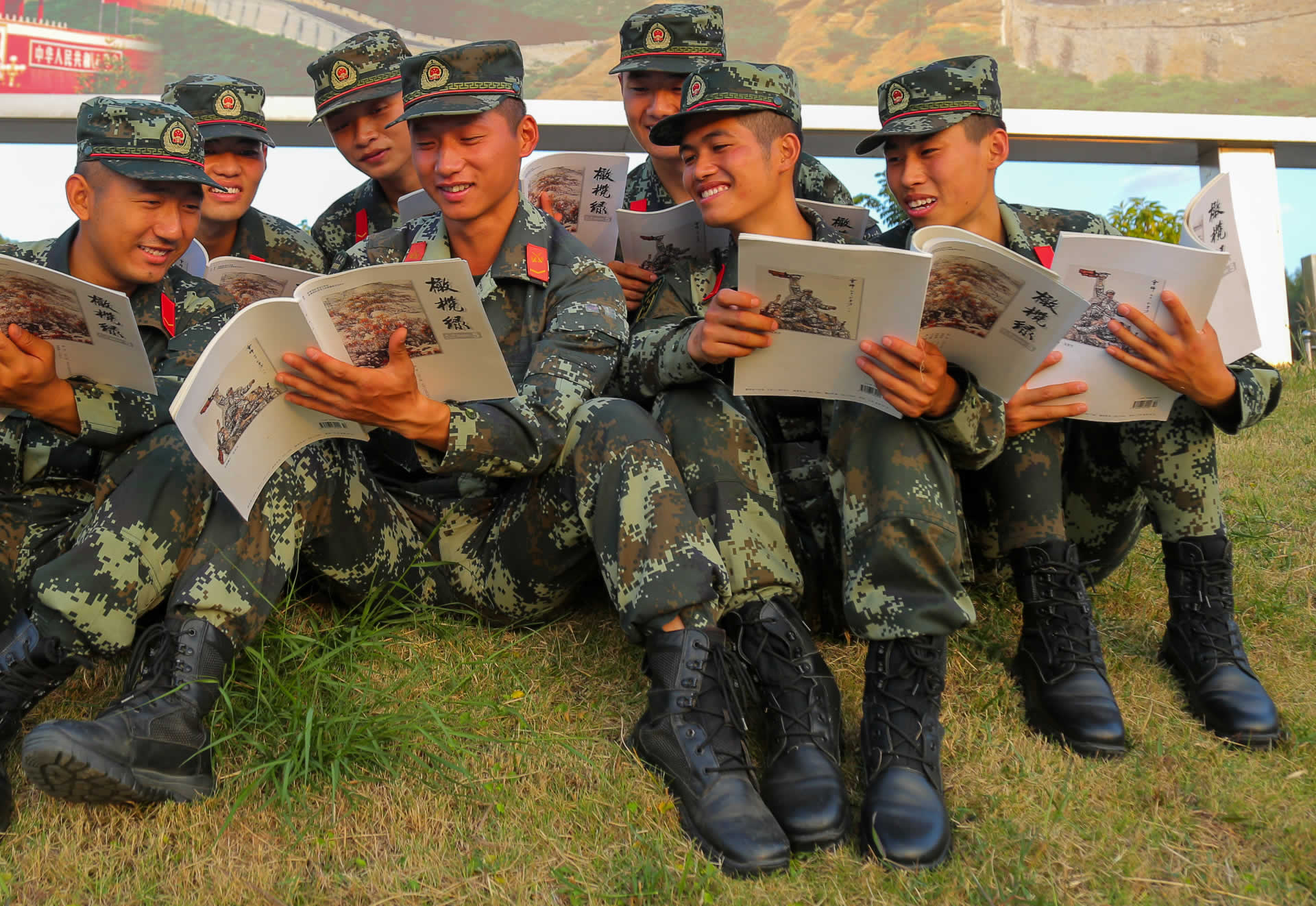 图为训练之余,汪旭成正在组织班里新战友一起读书。