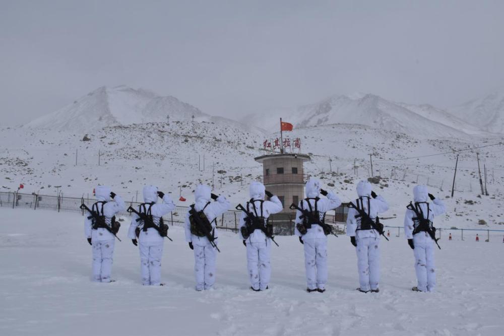 红其拉甫边防连即将退役的老兵在海拔4700多米的边境线上执行巡逻任务