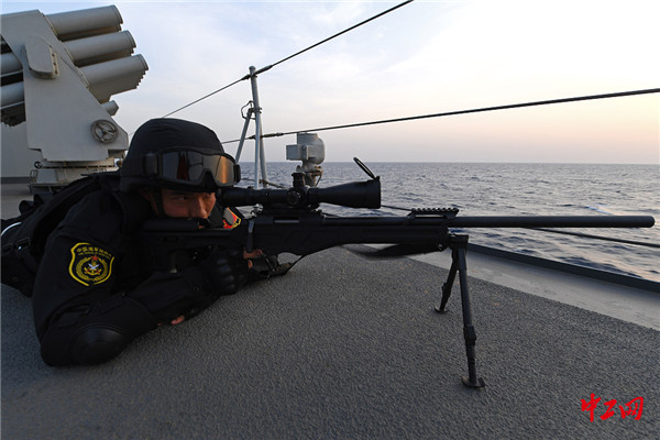 炎炎烈日,特战队员在高温甲板上开展远程狙杀、擒拿格斗等战斗科目训练,磨砺意志品质,练就一剑封喉、一招毙敌的硬功夫。在擒拿格斗现场,特战队员个个虎虎生威,侧踹、顶膝、锁喉,每个动作都精准狠。