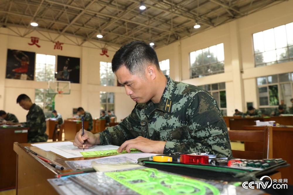 图为指挥员正在进行作战勤务标图。(董亚涛 彭振武 陈鹏程)