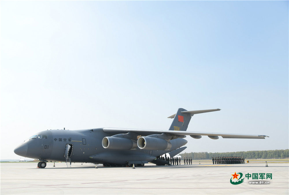 中国军网沈阳9月27日电 解放军报记者王俊摄影报道:9月27日,在2架歼-11B战机护航伴飞下,第七批在韩中国人民志愿军烈士遗骸由我空军运-20运输机接运回国,抵达沈阳桃仙国际机场,机上共载有117位志愿军烈士的遗骸及相关遗物。迎接仪式后,烈士遗骸棺椁被护送至沈阳抗美援朝烈士陵园。28日10时,安葬仪式将在该陵园志愿军烈士纪念广场举行。