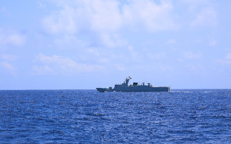 南部战区海军某护卫舰支队展开舰炮对海射击训练