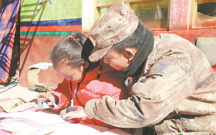 “金珠玛米,呀古都(藏语,意为解放军好)!”看到来访的西藏日喀则军分区帮扶官兵,岗巴县吉汝村牧民次仁巴桑分外喜悦。得益于日喀则军分区投资的岗巴羊养殖项目,次仁巴桑一家的生活有了很大改善。