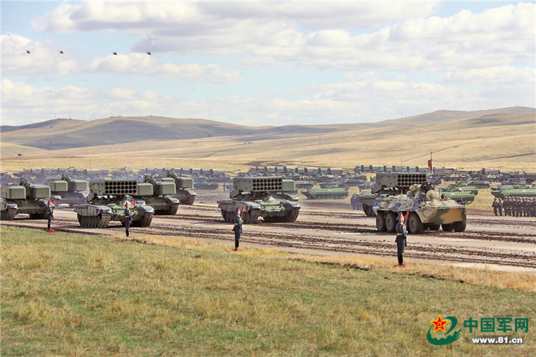 9月13日,“东方-2018”战略演习举行沙场检阅,中俄一系列重量级“明星”装备悉数亮相,共将战略演习推向高潮。 李祥辉摄